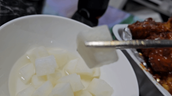 요 새콤한 무시도 한개씩 입에 넣어가매,