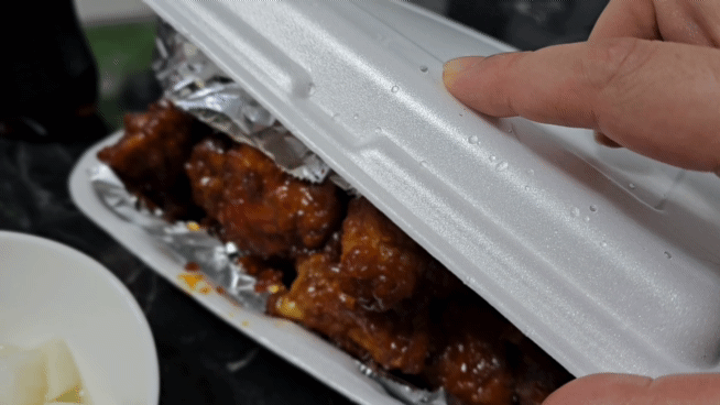 자 포장된 용기 뚜껑을 열어보니,