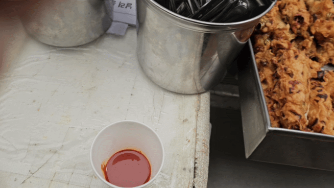 초장소스를 종이컵에 짜서
