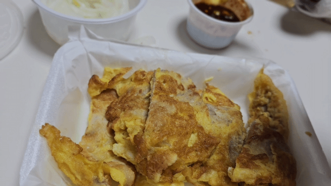 얇은 돼지고기를 계란물에 묻혀
